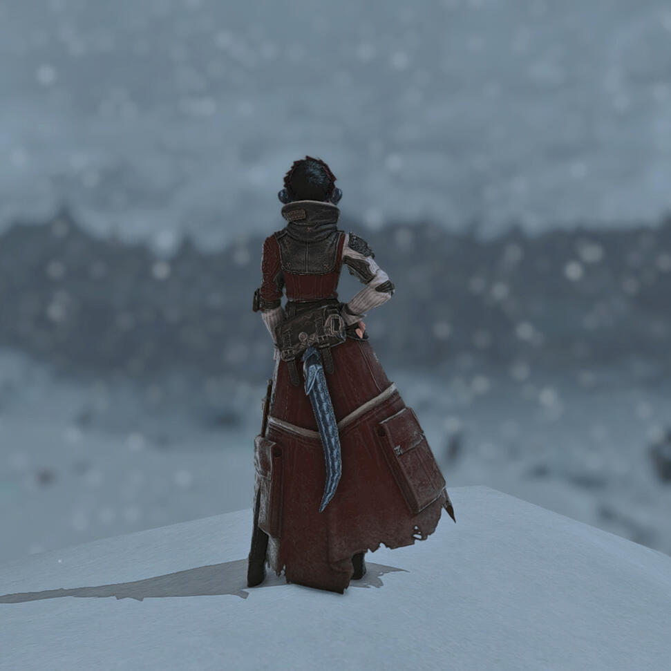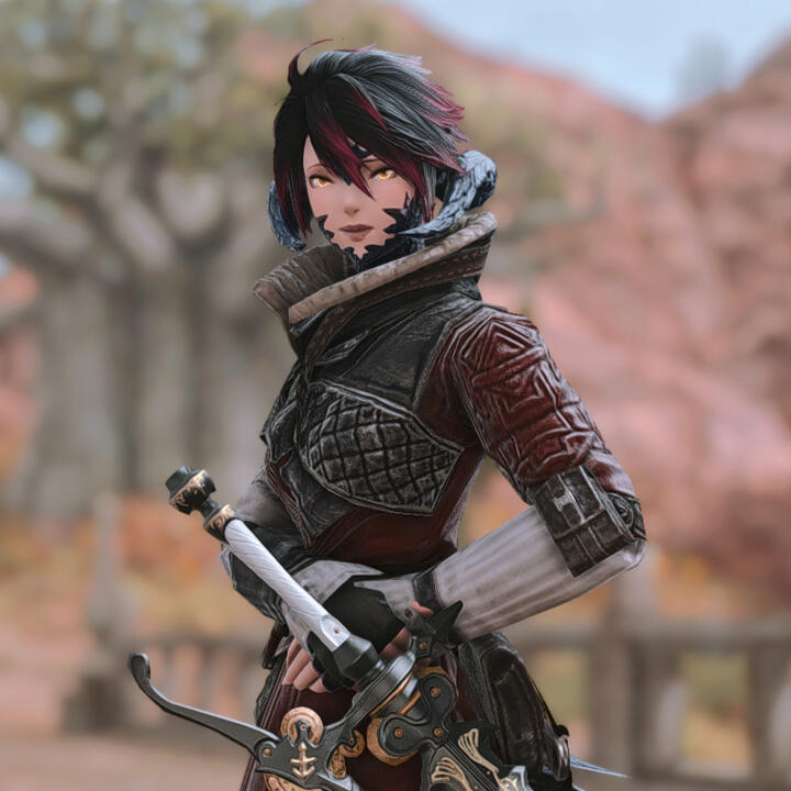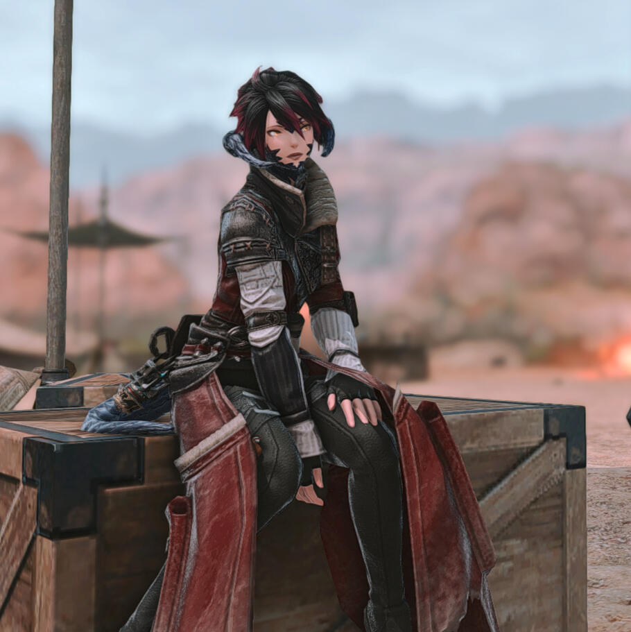 Mihr is a starry-eyed Xaela hailing from Ul'dah, born to a Xaela woman and Midlander man, spending most of her young life on a small farm belonging to her father's family. She was blessed with a peaceful, yet uneventful youth outside of the city, working as an extra hand to support her family. But while she enjoyed her simpler life, the young Au'ra grew an interest in the various merchant caravans coming to and from Ul'dah, watching from afar as she daydreamed about the world where said traders would obtain their treasures. It seemed like such a large world, outside of her small farm!When a small band of travelers visited the homestead to purchase food for their journeys, Mihr saw an opportunity. An extra pair of hands for them, a ticket to fulfill her wanderlust. A fair deal, she thought. She left her relatives behind, and became a simple traveler, with a simple goal to see the distant lands she would dream of. Every grand city would leave the country-born Xaela awestruck, each sparkling beach leaving her breathless, and every lush forest causing her head to swim with their sheer size.She would bounce from caravan to caravan, picking roles within them as would grant her passage. A cook to ensure the members are fed, a bodyguard to fend away robbers, a chocobokeep to tend to the birds pulling the carts, there was hardly any role she wouldn't take, if it promised her a new sight to behold. However, it was a trip to the frozen wastes of Coerthas that gave her an epiphany.The cold, heartless mountains coupled with the violent history of Ishgard had Mihr completely enamored. The endless blanket of snow, mountain peaks that touched the heavens, and caverns of brilliant crystal. Even in the unforgiving land here, there was beauty which she could never have imagined! So here, she decided, there wasn't anything in the world she couldn't love, if she could even find love for the cruel land in this corner of the planet.There was a unique beauty in everything on the planet, no matter how small, ugly, or cruel it was. Every new job would show her something fresh and exciting, and her wanderlust had yet to fade! So Mihr vowed she would see it all, at least as much as she possibly could. It was a daunting goal, but one she was more than happy to strive for.